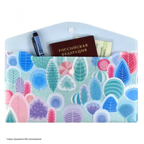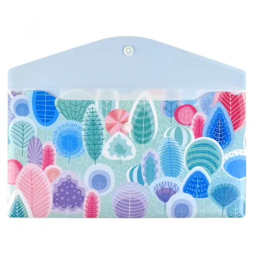 Папка для документов. СКАЗОЧНЫЙ ЛЕС. Размер: 26x14 см. Материал: полипропилен. Толщина: 180 мкм. Количество отделений: 1. Тип застёжки: кнопка. Цвет - голубой, зеленый. Отделка: УФ-печать.