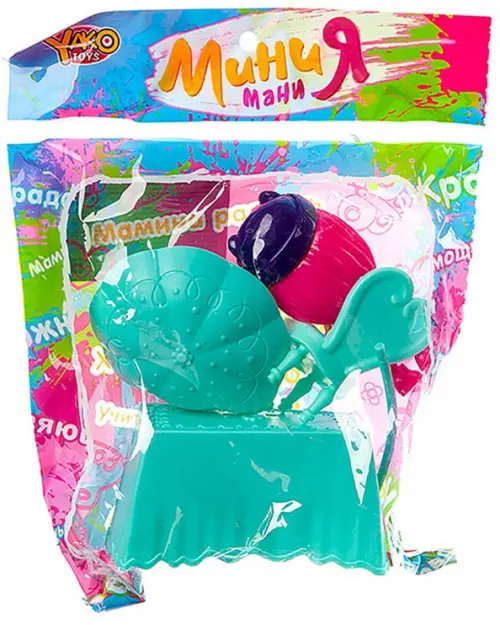 Куколка из ПВХ. 8 см. Голова поворачивается. Тело с ногами соединено шарнирно (отклоняется вперёд/назад). В составе набора Стол, 2 стула, разборный зонт (устанавливается над столом).