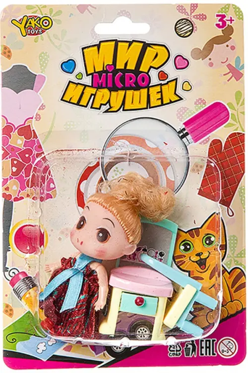 Кукла 8 см. Тело, руки, ноги - твёрдый пластик. Голова - ПВХ. Руки и ноги поворачиваются. В наборе стул, трюмо. Ящичек выдвигается.
