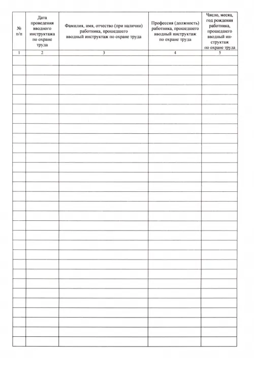 Журнал регистрации вводного инструктажа по охране труда