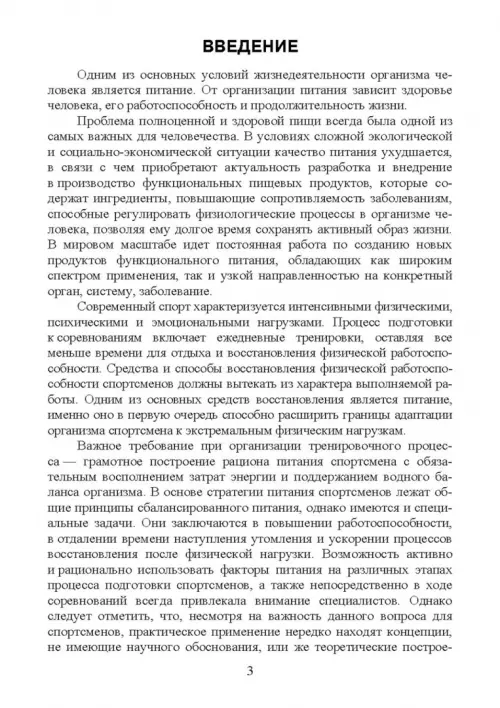 В учебном пособии изложены основные вопросы, связанные с питанием спортсменов. Представлены медико-биологические и технологические требования, предъявляемые к питанию спортсменов, в которых отражены качественные показатели пищи, потребности в основных пищевых веществах и энергии. Даны практические рекомендации составления рационов питания. Рассмотрены биохимические изменения в мышцах, головном мозге, миокарде, печени, крови в организме спортсменов. Описаны основные группы добавок, используемые в питании спортсменов. Приведена классификация специализированных продуктов для спортивного питания. Представлен анализ современного состояния производства продуктов спортивного питания и технологии их производства.