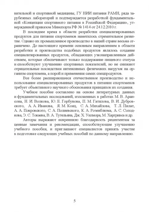 специализированных продуктов питания в спорте