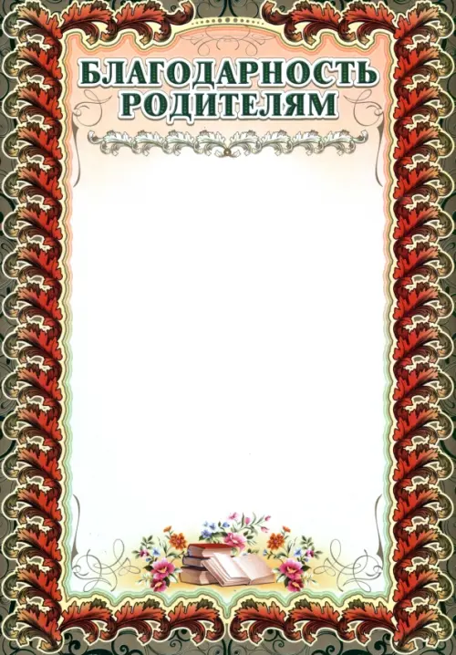 Благодарность родителям (с бронзой). Формат: А4. Тип бумаги: мелованный картон.