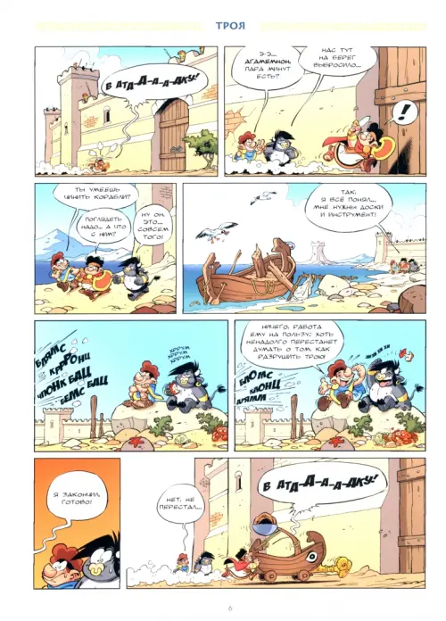 Жуткий циклоп Полифем, коварная волшебница Кирка, прекрасная Калипсо, кошмарные Скилла с Харибдой - кто не знает этих и многих других, ничуть не менее колоритных персонажей знаменитой "Одиссеи", повествующей о десятилетнем возвращении домой одного из главных героев Троянской войны! Ещё бы не знать, ведь сам Гомер посвятил ему целую поэму... Только Гомер Гомером, а у неугомонных Мифят на этот счёт своё мнение. Какое? Да очень простое: всё было совсем не так. Во-первых, Таврик ни за что бы не отпустил друга одного, дорога-то дальняя! Во-вторых, прежде чем плыть из Трои домой, надо до этой самой Трои добраться. В третьих... Впрочем, стоит ли раскрывать все карты этой уморительно-неканонической, почтительно-пародийной, развлекательно-познавательной версии бессмертной поэмы от французских авторов Ларбье и Казнова?