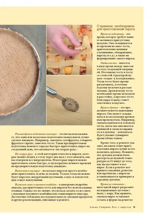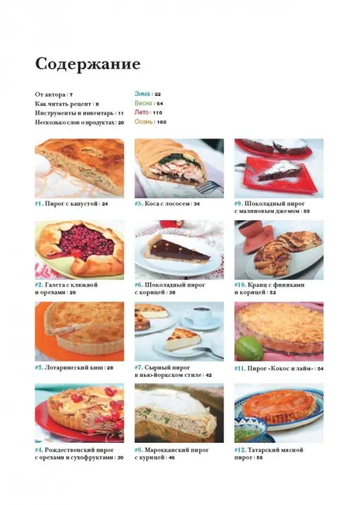 Эту книгу можно назвать шпаргалкой, потому что в ней можно быстро найти ответ на вопрос: "Что испечь?". Рецепты сгруппированы не по виду теста или начинки, а в зависимости от того, в какое время года удобно печь тот или иной пирог, исходя из возможности купить продукты в их наилучшем качестве.
