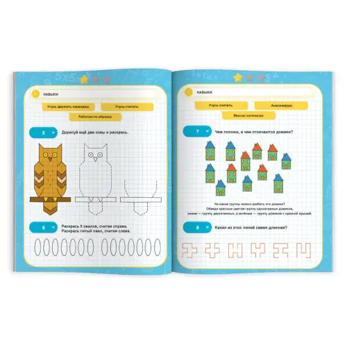IQ-тренажёр развивает логику, внимание, образное мышление, которые так необходимы будущему школьнику. Задания выстроены от простого к сложному, и ребёнок сможет заниматься в тетради самостоятельно. А чек-лист поможет родителям точно отследить, на что следует обратить внимание.