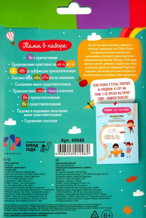 Долой скучные школьные правила и таблицы, наводящие сон! Перед Вами невероятно весёлые памятки для школьников в формате ярких карточек с забавными картинками. Наборы этой серии помогут увлечь ребенка и задать тон всему учебному процессу в будущем!