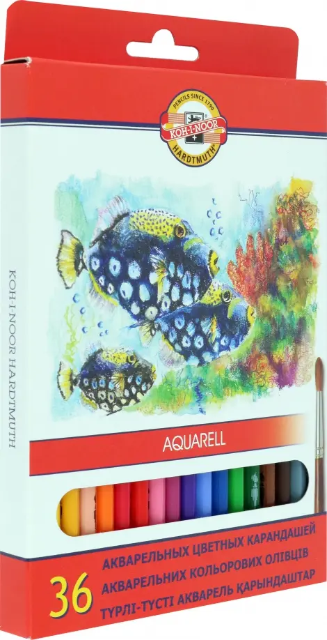 Красивый набор акварельных карандашей от уважаемого в нашей стране бренда Koh-I-Noor по доступной цене. Всего предлагается 36 цветов и оттенков. Более чем достаточно для учащегося начальной и средней школы. Карандаши упакованы в прочную, яркую коробку, хорошо защищающую от ударов. Линии проводят хорошо, затачивать легко, как точилкой, так и ножиком...