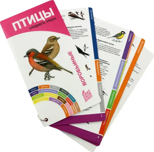Первый издательский проект сообщества бёрдвотчеров EkaterinBird. Определитель предназначен для познавательных экскурсий, самостоятельного и совместного знакомства с птицами людей любого возраста. Веер защищен от влажности и повреждений специальным покрытием. Издание выпущено при научной поддержке Института экологии растений и животных УрО РАН и Уральского орнитологического общества.