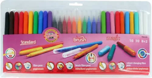 В набор фломастеров Koh-i-Noor Standard входят сразу три вида фломастеров - стандартные, кистевидные и фломастеры Magic.