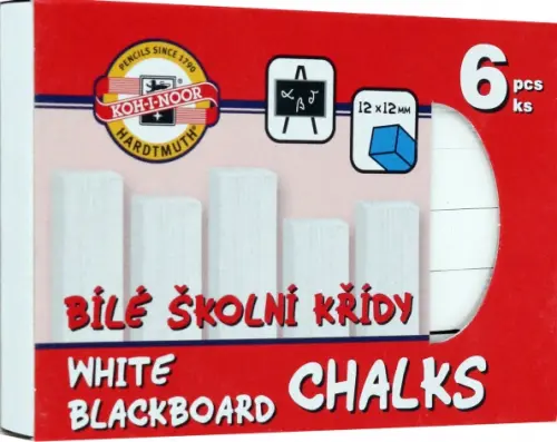 Мел школьный, 6 штук, белый