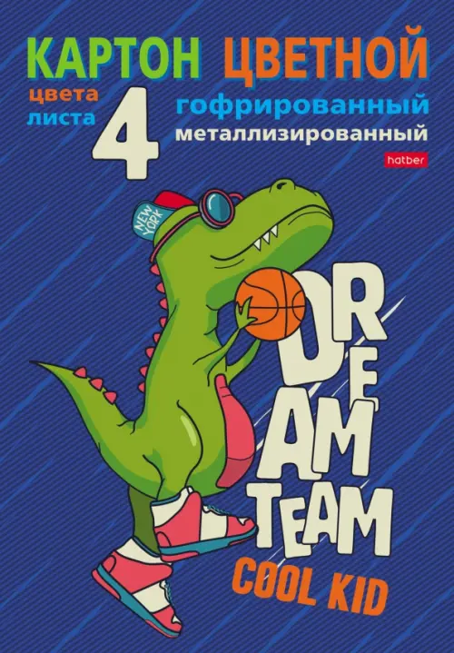 Картон цветной гофрированный металлизированный. Баскетболист Дино, 4 листа, 4 цвета