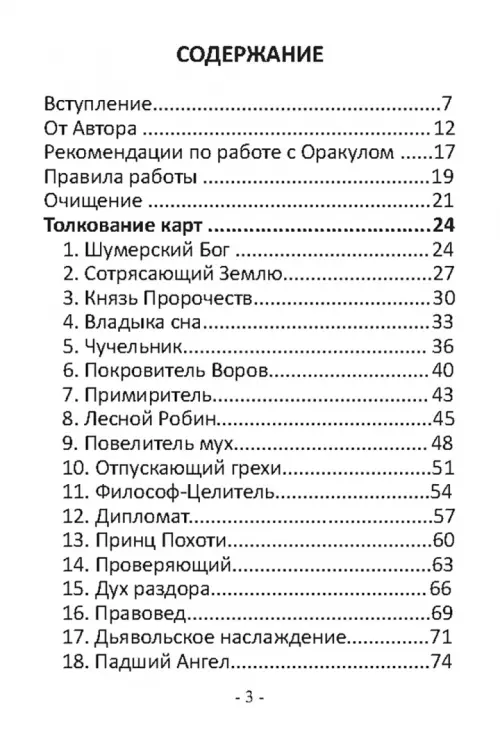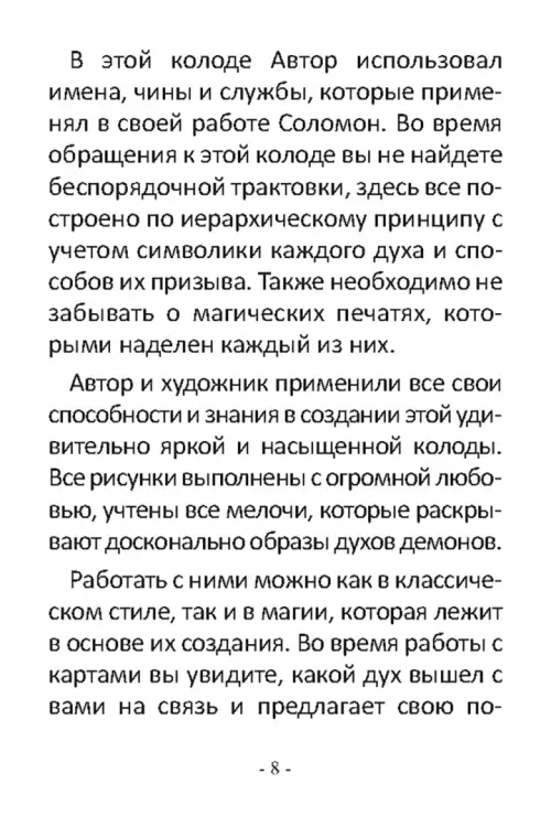 Вы держите в руках удивительно красочную колоду, созданную на основе древних знаний, где задействованы сильнейшие энергии темных владык, которых Великий Царь Соломон заключил в медный кувшин вместе со всеми их легионами. Но любопытство людей намного сильнее всякого запрета, именно поэтому сегодня в ваших руках – уникальное детище автора и художника, которые на протяжении года создавали этот Оракул, чтобы мы могли не только познакомиться с историей, но и убедиться в силе и могуществе каждого персонажа Оракула. Представленный материал станет находкой не только для профессионалов, серьезно занимающихся ритуальными практиками, но и для начинающих, желающих понять основы изначального. Колода станет вашим помощником в определении проблем, а также мудрым советчиком в решении любых вопросов.