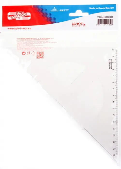 Угольник Koh-I-Noor изготовлен из высококачественного прозрачного полистирола. Шкалы печатаются с использованием точной технологии трафаретной печати. Печать устойчива к износу при обычном использовании.