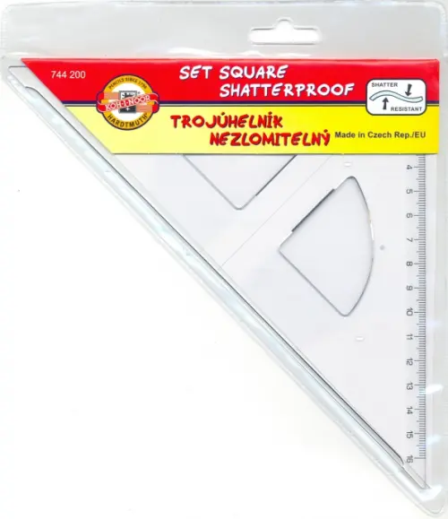 Угольник Koh-I-Noor изготовлен из высококачественного прозрачного полистирола. Шкалы печатаются с использованием точной технологии трафаретной печати. Печать устойчива к износу при обычном использовании.