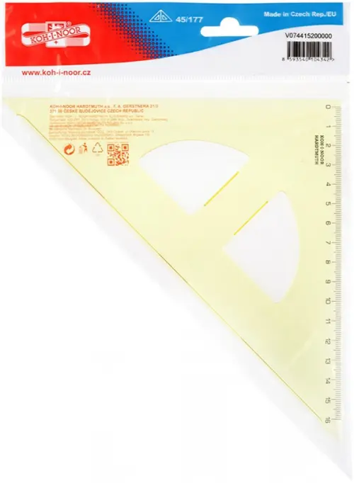 Угольник Koh-I-Noor изготовлен из высококачественного прозрачного желтого полистирола. Шкалы печатаются с использованием точной технологии трафаретной печати. Печать устойчива к износу при обычном использовании.