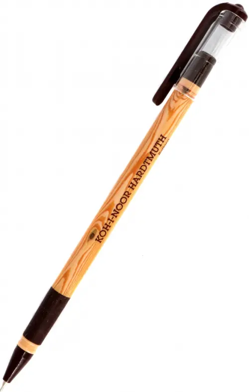 Ручка мне приглянулась стильным оформлением и фирмой известной.Корпус пластиковый, но сделан под дерево, колпачок прочно защелкивается.Пишет синим, линия тонкая, не мажет. В колпачке не сохнет, хотя пользуюсь не часто. У края ручки коричневый материал прорезиненный, поэтому ее удобно держать. Вверху кончик откручивается - стержень можно заменить.