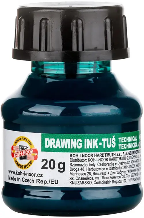 Акриловая тушь на водной основе Koh-I-Noor используется для оформительских работ. Наносится на бумагу с помощью плакатных перьев, кистей, деревянных палочек.