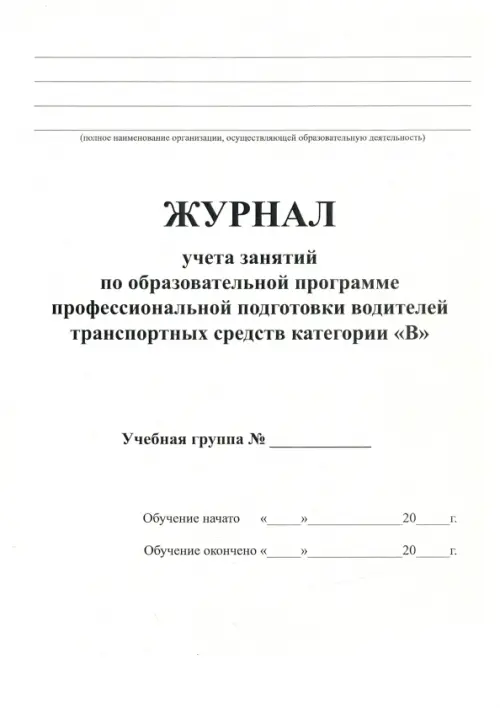 Журнал для учета занятий по подготовке водителей категории В