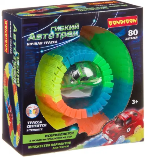 Именно для этого Bondibon приготовил набор "Ночная трасса" с 80 деталями! Детали трассы можно комбинировать в любом порядке, строить трассу с возвышениями, и многое другое! Уникальная машинка проедет везде, главное - построить путь так, чтобы машинка не застревала, а свободно катилась по дорожкам и виражам. Конструктор поможет развить моторику, воображение, внимательность, пространственное мышление и творческие способности. Познакомит со сложными понятиями как скорость, трение, сила тяжести, ускорение и вес.