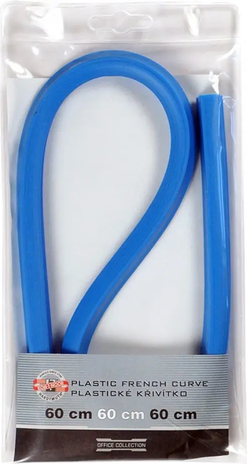 Лекало Koh-I-Noor, выполненное из гибкого пластика синего цвета, позволит вам относительно точно строить участки таких кривых, как эллипс, парабола, гипербола, различные спирали.