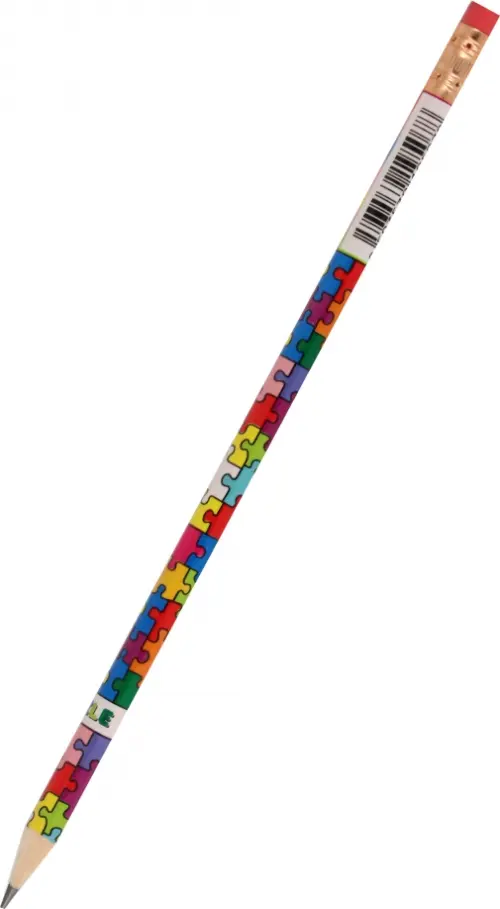 Универсальный чернографитный карандаш с ярким рисунком "Пазлы" прекрасно подходит для школьников и молодежи.