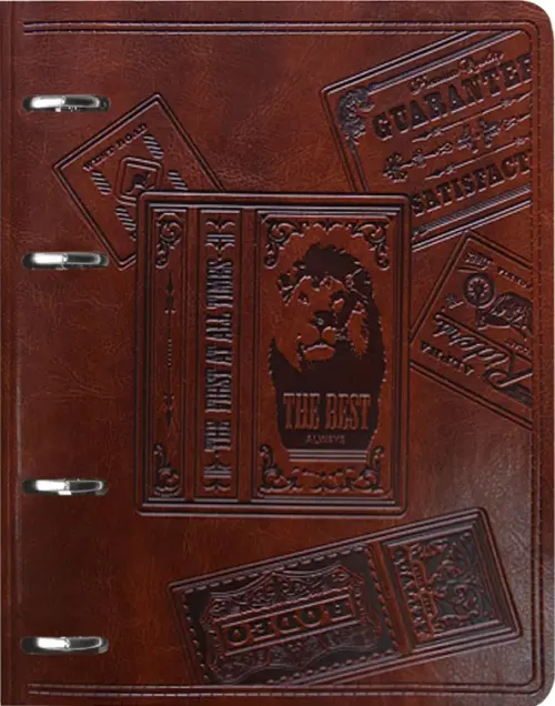 Обложка: снаружи - люксовая искусственная кожа с блинтовым макротиснением по поверхности; внутри - черный картон 300 г/м2.