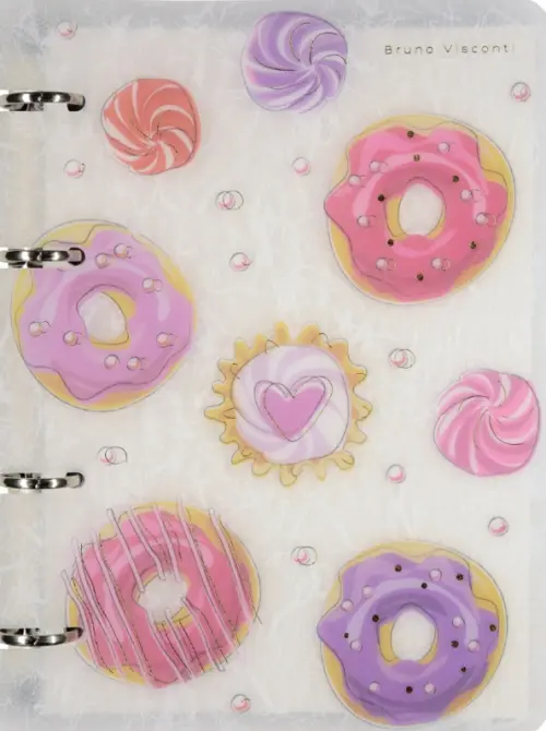 Сладкие и привлекательные зефирки, печеньки и пончики "рассыпались" по обложке тетради на кольцах со сменным блоком серии "Сладкое настроение". Симпатичный и оригинальный дизайн обязательно понравится юным сладкоежкам, студентам колледжей и ВУЗов. Высококачественная тетрадь надолго сохранит опрятный внешний вид благодаря гибкой обложке из полупрозрачного пластика. Углы обложки скруглены. Белая офсетная бумага блока плотностью 70 г/кв.м дает возможность использовать чернила различного качества. Линовка блока в клетку позволит использовать тетрадь для гуманитарных и технических предметов. Наличие кольцевого механизма дает возможность увеличивать или уменьшать количество листов в блоке. В комплект к тетради можно подобрать другие продукты с аналогичным дизайном: ручки, карандаши, папки, блокноты и пр.