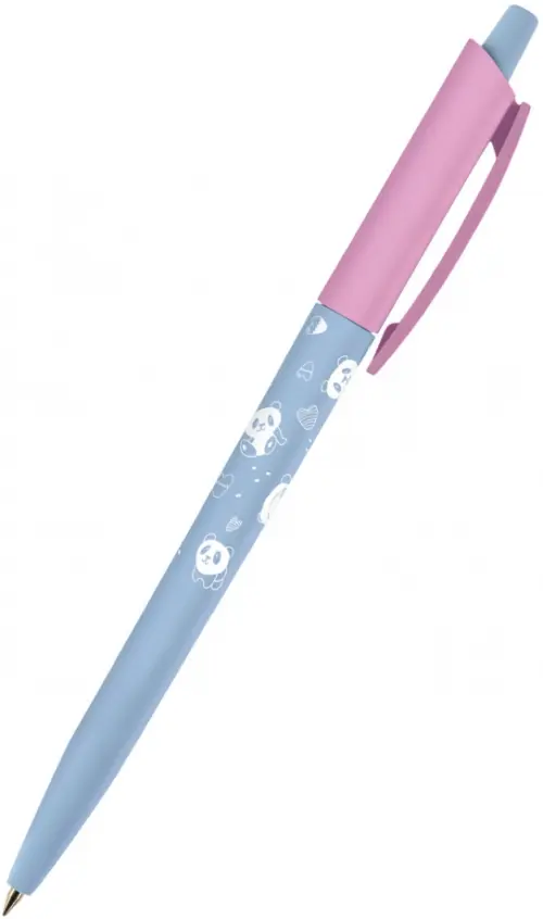 Ручка шариковая автоматическая HappyClick. Зефирные животные. Панды, 0.5 мм, синяя