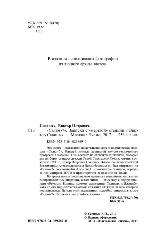 Если вы обнаружили ошибку в описании товара «"Салют-7". Записки с "мертвой" станции» (авторы: Савиных Виктор Петрович), то выделите её мышкой и нажмите Ctrl+Enter. Спасибо, что помогаете нам стать лучше!