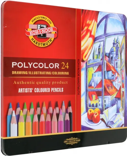 Набор профессиональных цветных карандашей Polycolor состоит из палитры 24 цветов в практичном металлическом пенале.