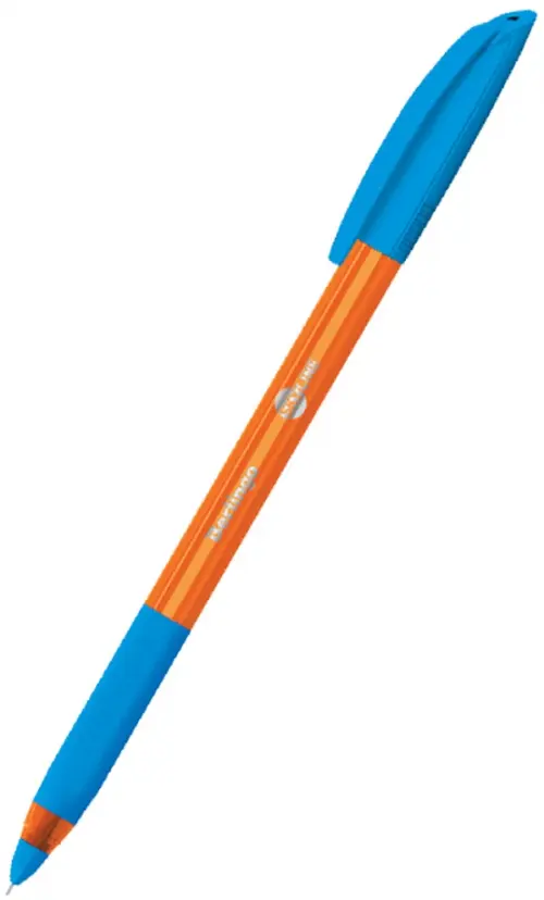 Одноразовая шариковая ручка Berlingo Skyline, в стильном дизайне, сочетающем комплементарные цвета, оснащенная вентилируемым колпачком и пластиковым клипом. Корпус ручки имеет эргономичную трехгранную форму, а резиновый эргономичный упор для пальцев предотвращает усталость и скольжение пальцев при письме.
