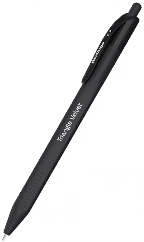 Стильная одноразовая автоматическая шариковая ручка Berlingo Triangle Velvet с пластиковым клипом представлена в корпусе эргономичной трёхгранной формы. Такая ручка может эффектно дополнить образ ценителей total black. Приятное бархатистое покрытие корпуса Soft touch и рифление в зоне захвата создают комфорт при письме. Кнопочная подача стержня обеспечивает дополнительное удобство при работе с ручкой. Диаметр пишущего узла составляет 0,7 мм, благодаря чему ручка прекрасно подходит для любого стиля письма. Толщина линии письма составляет 0,5 мм, длина линии письма – 820 метров.