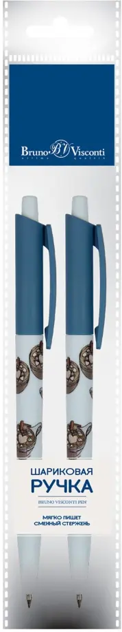 Набор из 2 синих шариковых ручек HappyClick. Кофемания. Горячий шоколад, 0.5 мм