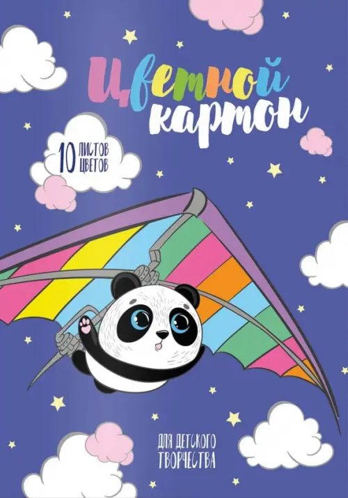 Картон цветной. Летящая панда, 10 листов, 10 цветов