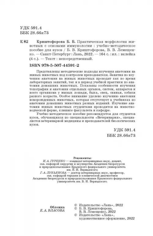 Если вы обнаружили ошибку в описании товара «Изучение анатомии на животных с основами иммуноморфологии. Учебное пособие» (авторы: Криштофорова Бесса Владиславовна, Лемещенко Владимир Владимирович), то выделите её мышкой и нажмите Ctrl+Enter. Спасибо, что помогаете нам стать лучше!