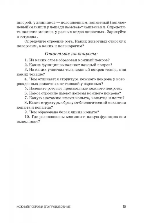 Тема № 2. Кожный покров и его производные