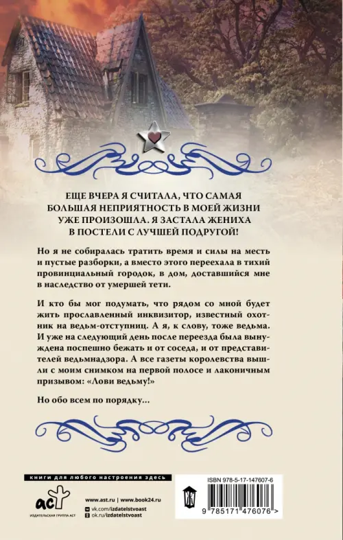 И кто бы мог подумать, что рядом со мной будет жить прославленный инквизитор, известный охотник на ведьм-отступниц. А я, к слову, тоже ведьма. И уже на следующий день после переезда была вынуждена поспешно бежать и от соседа, и от представителей ведьмнадзора. А все газеты королевства вышли с моим снимком на первой полосе и лаконичным призывом: «Лови ведьму!»
