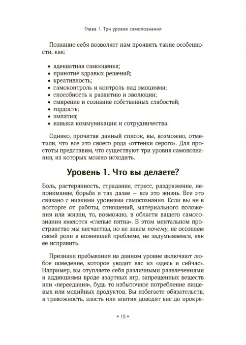 В этой книге вы найдете науку, философию, практику – всего поровну. Чтобы стать лучше, вначале определите, что это означает лично для вас. «Искусство самопознания» приглашает вас в путь, но не куда-то в экзотические дали... это путь к себе. Он может быть опасным, пугающим, лишенным комфорта, но в конце вас ожидает волшебная награда. Знание себя не равно знанию своего имени по паспорту; вы должны осознать, что делает вас счастливыми, что заставляет грустить, а еще – какие убеждения и ценности инициируют подобные эмоции.