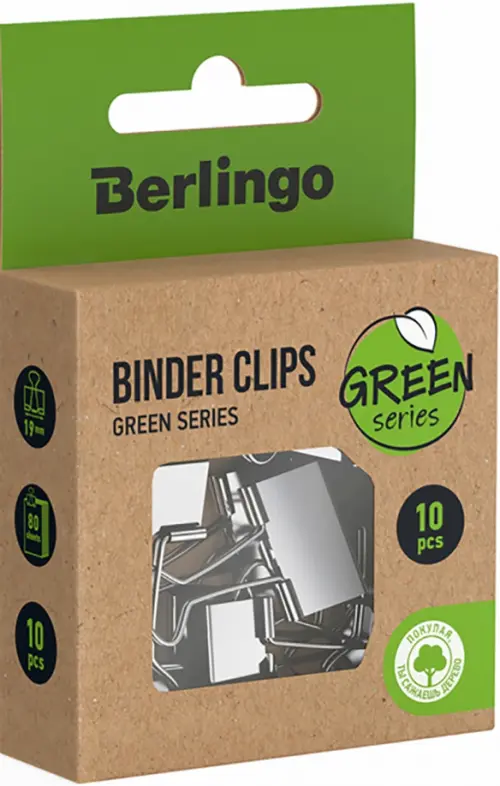 Зажимы для бумаг Berlingo "Green Series" выполнены из стали. Надежно скрепляют бумагу, не оставляют на ней следов и не деформируют.