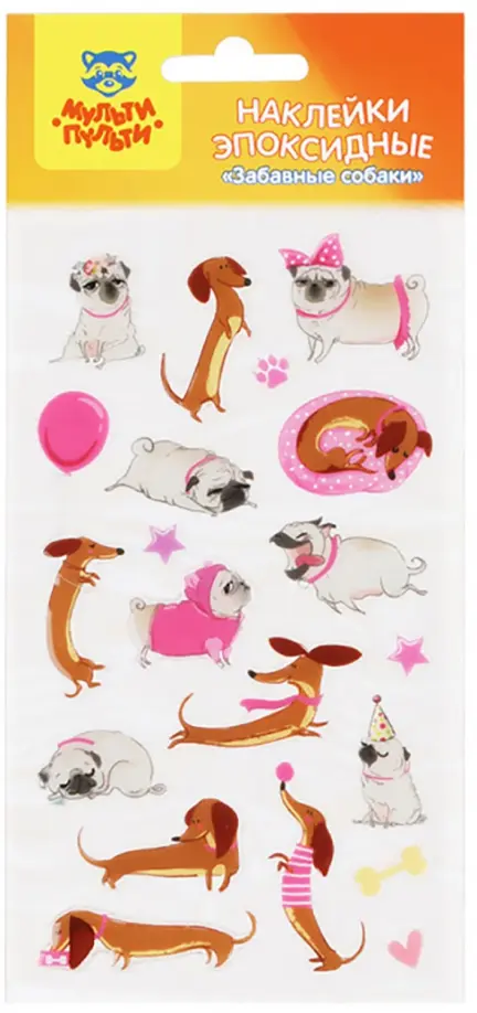 Эпоксидные наклейки «Забавные собаки» - это отличный материал для творчества и игры. В наборе «Мульти-Пульти» 19 наклеек, размер листа 110*220 мм. Наклейки можно использовать для украшения и декорирования, а также для игр, оформления рисунков, открыток. Эпоксидные наклейки обладают выпуклой, прозрачной и гладкой поверхностью, приятной наощупь. Комбинируя наклейки из различных наборов «Мульти-Пульти» можно придумать целые творческие сюжеты!