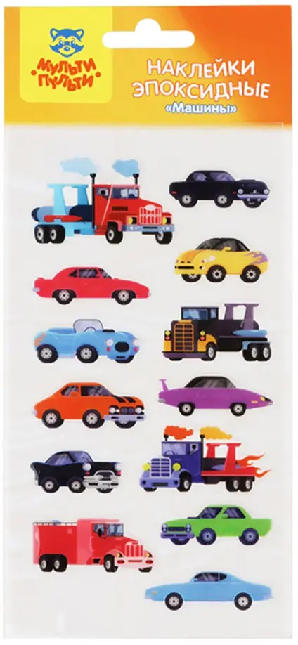 Эпоксидные наклейки «Машины» - это отличный материал для творчества и игры. В наборе «Мульти-Пульти» 13 наклеек, размер листа 110*220 мм. Наклейки можно использовать для украшения и декорирования, а также для игр, оформления рисунков, открыток. Эпоксидные наклейки обладают выпуклой, прозрачной и гладкой поверхностью, приятной наощупь. Комбинируя наклейки из различных наборов «Мульти-Пульти» можно придумать целые творческие сюжеты!