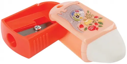 Небольшая и функциональная точилка с выдвижным механизмом имеет одно отверстие для заточки диаметром 8 мм и ластик.