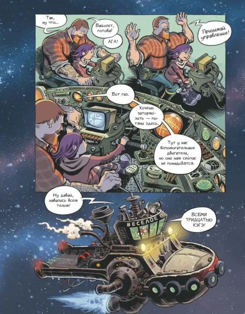 Вайолет живет с папой-пилотом и мамой-дизайнером в одном из космических трейлер-парков. Однажды во время опасного вылета отец Вайолет пропадает и бесстрашная девочка решает отправиться на его поиски. На пути ей встречаются инопланетные помощники: Закхей, похожий на фасолину, и Элиот Марсель Опгенорт, заучка-цыпленок. Вместе они пускаются в полное неожиданных поворотов приключение, ссорятся и мирятся, радуются и плачут, шутят и спасают Вселенную.