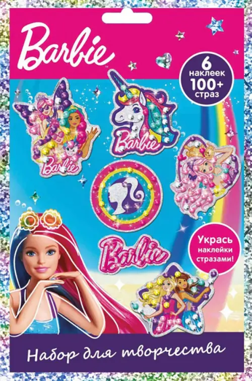 Увлекательное творчество для детей. Новый набор "Укрась наклейки стразами" понравится девочкам - поклонницам Barbie. Сначала нужно приклеить стразы по номерам на наклейки, и потом готовым шедевром можно украсить тетради, дневник, телефон.