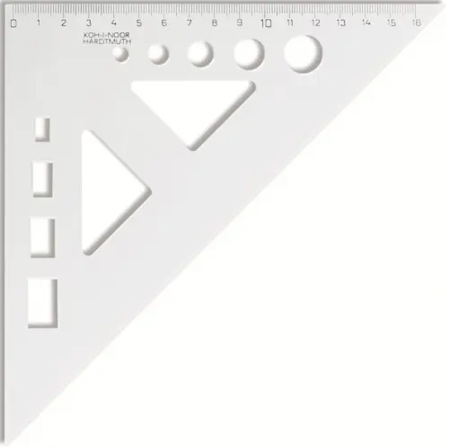 Угольник 45/177, с шаблонами, прозрачный пластик
