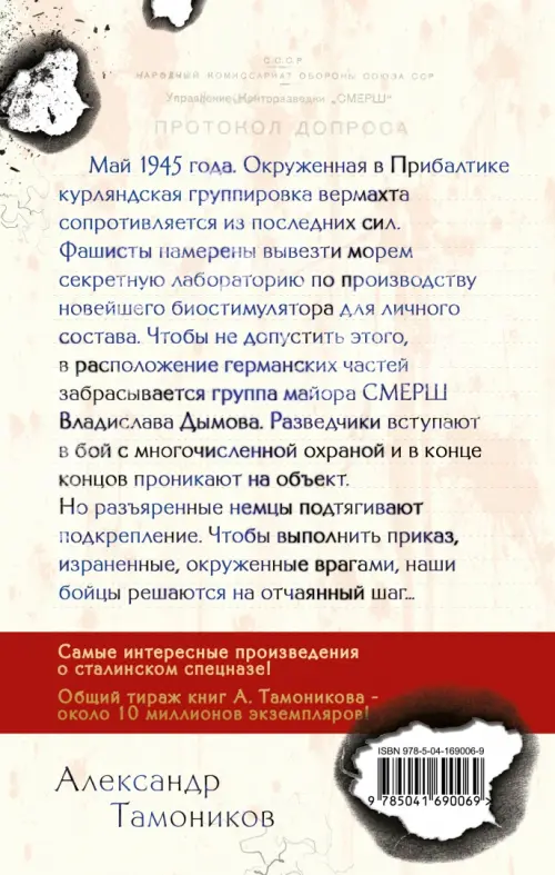Май 1945 года. Окруженная в Прибалтике курляндская группировка вермахта сопротивляется из последних сил. Фашисты намерены вывести морем секретную лабораторию по производству новейшего биостимулятора для личного состава. Чтобы не допустить этого, в расположение германских частей забрасывается группа майора СМЕРШа Владислава Дымова. Разведчики вступают в бой с многочисленной охраной и, в конце концов, проникают на объект. Но разъяренные немцы подтягивают подкрепление. Чтобы выполнить приказ, израненные, окруженные врагами, наши бойцы решаются на отчаянный шаг…