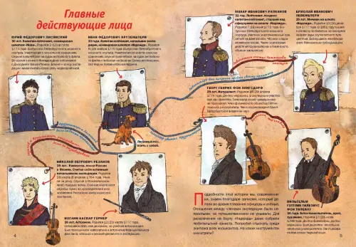 Кругосветное путешествие на шлюпах "Нева" и "Надежда" было богато на приключения. У берегов Русской Америки наши моряки участвовали в войне с индейцами, в Японии полгода были в почётном плену, пока решалась судьба посольства, в Китае закупали товары в обход местных запретов.