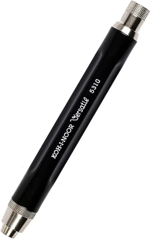 Цанговый карандаш Koh-I-Noor 5310 короткий с точилкой для грифеля - универсальный инструмент как для профессионала, так и для начинающего художника. Цанговый карандаш Koh-I-Noor 5311 для стержней толщиной 5,6мм используется в основном для художественных работ. Ведь именно такой толщины выпускаются сангина, сепия, уголь, мел и графит в виде стержней. Долговечность - отличительная особенность данного инструмента. Элементы корпуса и механизма - никелированные, сам корпус карандаша и нажимной механизм - металлический. Удобно лежит в руке, стержень надежно закреплен с помощью цангового механизма (стержень входит в комплект и его твёрдость HB). Карандаш снабжен мелаллическим клипом для удобной фиксации при перемещениях.