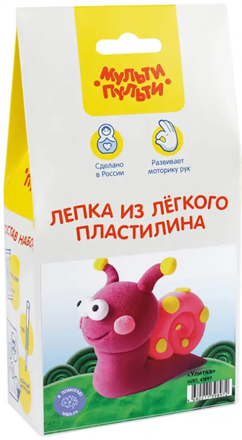 Воздушный пластилин «Мульти-Пульти» – это мягкий, пластичный и приятный материал. В результате работы с набором у вас получится дружелюбная яркая улитка. Она станет игрушкой или украшением детской комнаты.